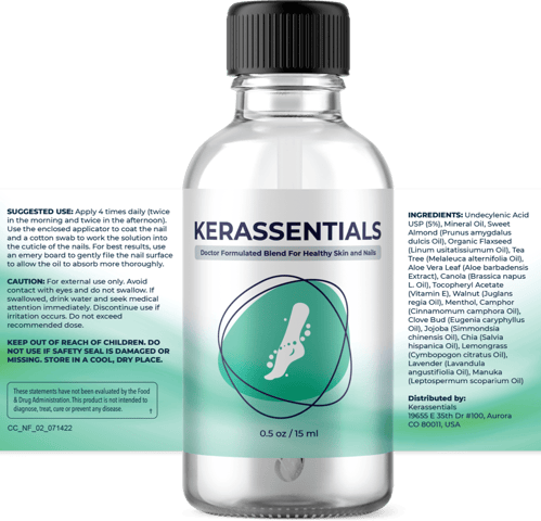 Kerassentials is a 100% natural formula designed to fight off toenail fungus 🦠 and improve nail health. Its powerful blend of oils and nutrients works deep into the nail bed, targeting the root cause of the problem. No more hiding your feet! 👣 With consistent use, you can expect clear, healthy, and beautiful nails.