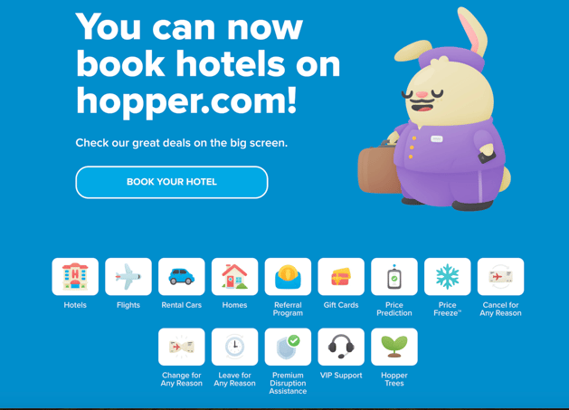 Comprehensive Search: Hopper searches through a vast database of flights and hotels, ensuring you have access to the best options available.